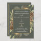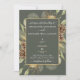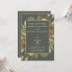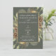 Diese rustikale Hochzeitseinladung ist sauber und dekorativ und bietet einen schönen Kiefernhain mit Kiefernfüßen auf einem eleganten botanischen moosgrünen Hintergrund mit goldenem Zierrahmen