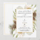 Diese rustikale Hochzeitseinladung ist sauber und dekorativ und bietet einen schönen Kiefernhain mit Kieferngestein auf weißem Hintergrund mit goldenem Zierrahmen
