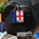 Cooler Gepäckumbau mit einer beunruhigten Kombination der amerikanischen Flagge und der Flagge von England.