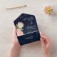 Rustikale Erdbläserne Palme Protea Navy Blue Weddi All In One Einladung
