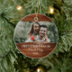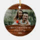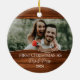 Feiern Sie Ihr erstes Weihnachtsfest als verheiratetes Paar mit diesem wunderschönen rustikalen Ornament! Dieses Design mit einem charmanten Holzeffekt-Hintergrund ermöglicht es Ihnen, Ihr Lieblings-Foto hochzuladen und mit Ihren Namen und dem Jahr zu personalisieren. Der Text "Erste Weihnachten als Mr. & Mrs." wird elegant dargestellt, was dies zu einem perfekten Sake für frisch verheiratete Menschen macht