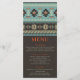 Dieses moderne Hochzeitsdesign eignet sich perfekt für eine Winterhochzeit mit einem rustikalen Stammesmuster oben in Orange, Blau, Beige und Braun und Ihr personalisiertes Menü unten. Der Text kann durch Bearbeiten der Textfelder personalisiert werden. Auf der anderen Seite befindet sich ein Stammesmuster oben mit den Namen des Brautpaares und dem Hochzeitstermin. Entworfen für Sie von Evco Studio © unter www.zazzle.com/store/evcostudio #wedding #savethedate #invlave #weddinginspiration #rustic #modern #tribal #ethnische #pattern #unique #elegant #stilsh #design #populäre #topsellers #topselling #custom #trending #winterwedding #outdoors #autumnwedding #stationery #stationery #personalisiert #personalisiert #destination #orange #orange Türkis #brawn #Party #partyPlanning #weddingery #stationery #stationery #menu #custom #geometric #geometric #geometric #