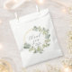 Einfache und rustikale Eukalyptus-Gastgeschenk Hochzeit Tasche. Wir bedanken uns bei Ihren Gästen für diesen eleganten Designstil, der mit einem angesagten Kalligraphieskript und romantischen Aquarellfarben-Eukalyptus-Blätter in einem Kranz mit goldenen Ringen aus Imitat aufwartet. Passen Sie sich einfach an.