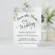 Diese schöne Save the Date-Karte wird Ihren Freunden und der Familie vorab Ihre Hochzeit mitteilen. Es zeichnet sich durch ein handgemaltes Aquarelldesign mit eleganter Skriptkalligraphie aus. Auf einem marmorierten, staubblauen Hintergrund stehen Eukalyptus-Blätter und Lavendel-Blume.