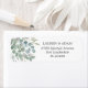 Rustikales und hübsches Rücksendelabel. Mit einer eleganten Anordnung von Eukalyptus und Blattwerk in dustigem Blau und Salbei grün. Ändern Sie Ihre persönlichen Daten.