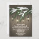 Rustikales Evergreen Lantern Bridal Duschbad Einladungen - Design mit einem rustikalen Holzhintergrund mit Laternen, die von einem schneebedeckten immergrünen Zweig. Siehe dazu passende Produkte in diesem Design, das in der Sammlung auf dieser Seite gefunden wurde.