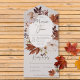 MIT ODER OHNE QR-CODE ZUM SCAN ODER MIT ODER OHNE AUSWAHLOPTIONEN ZUM ABENDESSEN. Dieses Design ist mit einem weichen, grau-beigefarbenen Herbstkranz in Bräune, Braun, Rost, lila und Creme gestaltet. Personalisierte All-In-One-Einladungen sind eine einzigartige Kombination aus einer schön gedruckten, maßgeschneiderten Einladung und einer leicht zu abreißenden perforierten UAWG-Postkarte. Und sie sind so einfach zu bedienen! Man falte einfach, dann Siegel die Rückklappe mit den drei beiliegenden Klarkleben, und Post. Und wenn Ihre Gäste Ihre persönliche Einladung erhalten, reißen sie einfach die perforierte RSVP Karte ab und lassen sie in der Mail an Sie zurück!