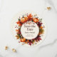 Feiern Sie Ihre Hochzeit im gemütlichen Herbststil mit dieser rustikalen, runden Save the Date Karte. Mit kräftigen Kürbissen, Herbstlauben, Beeren und Eicheln in warmen, saisonalen Farbtönen besticht dieses Design perfekt durch den Charme einer Herbsternte. Das kreisförmige Layout umrahmt Ihre Hochzeitsdetails in der Mitte und macht sie elegant und unvergesslich. Ideal für rustikale Hochzeiten, Scheunenfeiern und Herbstgarten-Party. Eine wunderschöne Wahl für Paare, die Liebe in ihren Farben und Naturschönheiten versinken lassen.