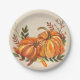 Diese wunderschönen, rustikalen 7" Teller mit Aquarellkürbis und Herbstlauben auf einem handgearbeiteten Papier-Hintergrund werden auf Ihrem Tisch wunderschön aussehen. Sie werden definitiv die letzte Touch hinzufügen, nach der Sie gesucht haben, um Ihre Herbst-und Erntedank-Tische zu würdigen.