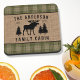 Schöne, rustikale Untersetzer, die Ihren Familiennamen und die Hütte, die Lodge, die Hütte oder andere Wunschtexte und das feststehende Datum enthalten. Dieses einzigartige, individuell gestaltete Design besticht durch die Silhouette eines Bullenmoose und Pinienbäume auf einem Bretterprint, die mit einem wunderschönen französischen Land in sanften Grastönen und Salbei-Grün kariert sind. Um mehr Designs wie dieses zu sehen, besuchen Sie bitte meinen Shop hier unter "Zazzle.com/Rustic_Charm". Danke.