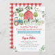 Diese Einladung enthält niedliche Nutztiere mit grünen Akzenten.