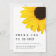 Rustikale, kühne gelbe Sonnenblume Neuvermählt Vielen Dank. Eine riesige schöne Sonnenblume füllt die obere rechte Seite und der Kopf ist groß unten in stilvollen Kleinbuchstaben mit den Details unten. Personalisieren Sie den Text einfach auf Ihre eigenen Daten.