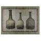 Rustikale, stille Lebenskunst mit 3 antiken Flaschen in gedämpften Tönen grün und braun.