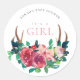 Rustikale Flora Antlers Es ist eine Girl Baby Dusc Runder Aufkleber