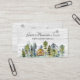Eine neue Visitenkarte der Rustikalen Foggy Forest Mountain Cabin mit einer Aquarellhütte inmitten eines nebligen grünen Pinienwaldes. Ideal für die Vermietung von Ferienhaus, Lodge, Seehaus und Hütte.