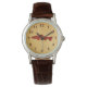 Ein perfektes Geschenk für einen Fischer. Eine digitale Darstellung einer Forelle, mit einem antiken rustikalen Look, überlagert auf einem alten Papier Hintergrund Bild. Sie können die Stundenzahlen leicht entfernen, wenn Sie ein moderneres Aussehen wünschen.