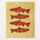 Eine digitale Darstellung von vier Forelle in entgegengesetzte Richtungen, mit einem antiken rustikalen Look, überlagert auf einem alten Papier Hintergrund Bild. Es gibt zwei Orte, an denen Sie Ihren eigenen Text anpassen können.