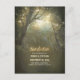 Rustikale Save the Date Postkarte für Hochzeiten im Wald. Save the Date inspiriert von Wäldern und wilder Natur. Die Postkarte enthält alte Bäume und Lichter mit Zeichenketten.