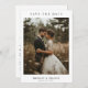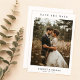 Dieses rustikale Foto "Wedding Save the Date" besticht durch eine romantische Waldlandschaft, in der sich das Ehepaar umgibt und die durch eine weiche, natürliche Umgebung hervorgehoben wird. Das Design verwendet klassische Typografie über dem Bild und präsentiert eine zeitlose und elegante Anziehungskraft.