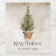 Rustic Mery Christmas Wein Labels. Individuelles Weinetikett mit einem Aquarellweihbaum. Cava Party Design