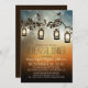 Schönes rustikales Probe Dinner Einladung mit Gartenleuchten - Öllaternen hängen an den Ästen des alten Baumes. — Wenn Sie die IT-Taste drücken, können Sie den Schriftart-Stil, die Farbe, die Größe, das Verschieben usw. verändern. Das gibt Ihnen mehr Möglichkeiten!