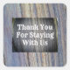 Mit diesem rustikalen Aufkleber können Sie Ihren Feriengästen Ihre Wertschätzung aussprechen. Dieser Aufkleber ist mit einem Foto aus wunderschönen Holzkörnern mit Brauntönen und Grautönen gestaltet. Ein zentrisches Quadrat dunklerer Holzkörner bildet den Hintergrund für Ihre Wertungsworte. "Vielen Dank, dass Sie mit uns bleibe haben" kann leicht an Ihren Anzug angepasst werden.