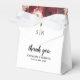Elegante Hochzeitsgartons mit rustikalen Aquarellfarben, Bordeaux- und Rosa-Blüten, Ihre Initialen, das Sprichwort "Danke", Ihre Namen und das Hochzeitsdatum.