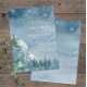 Das dunkelblaue Design der Theme Parties besticht durch Aquarellbäume und das Set der Berge auf einem dunkelblauen Aquarell. Die Typografie verbindet traditionelle Schrift mit modernem, handgeschriebenem Text. #SaveTheDate #DustyBlueWedding