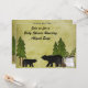 Rustikale Gebirgsbärendusche Einladung für Jungen, Mädchen und neutrale Babyduschen mit grünem Hintergrund.