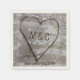 Ein rustikales Baummotiv mit einem auf einen Baum geschnitzten Herz. Personalisieren Sie diese Serviette mit den Initialen eines Paares und dem Hochzeitstag. Sie sind perfekt für eine Hochzeit im Freien, rustikal, wald, birch oder baumbezogen.