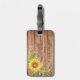 Ein elegantes, rustikales Gepäckstück mit gelber Sonnenblume, das aus einem braunen Holzkornboden besteht und mit einer hübschen, wasserfarbenen gelben Sonnenblume mit Biene und Lichterketten geschmückt ist. Ein schönes Accessoire für alle Urlaubsreisetaschen und Koffer. Personalisieren Sie mit einem Namen auf der Vorderseite und Kontaktinformationen und Adresse (optional) auf der Rückseite - löschen Sie einfach das Adressfeld, wenn es nicht gewollt wird. Genießen Sie Ihre Reisen.