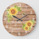 Ein schönes rustikales, gelbes Sonnenblumendesign macht eine hübsche elegante Uhr mit einem braunen Holzkornhintergrund, der mit einer hübschen, wasserfarbenen gelben Sonnenblume mit Biene und Lichterketten geschmückt ist. Mit weißen Zahlen und Familiennamen oder Paarnamen ist die Uhr leicht zu lesen, ein ideales Sake-Geschenk für Ihre Familie oder als ein einzigartiges Haus- oder Geburtstagsgeschenk, Jubiläum, Hochzeit oder Dusche . Personalisieren Sie mit Ihren eigenen Namen.