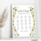 Tauchen Sie ein in die Romantik und Eleganz dieses raffinierten rustikalen Plakatplakats mit einer schönen Sonnenblume und Eukalyptuskranz. Dieses Plakat mit 12 Sitzplätzen sorgt für einen eleganten und eleganten Flair, der das Ambiente Ihrer Hochzeitsdekoration im Freien unterstreicht.