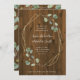 Dieses rustikale und trendy Hochzeitseinladungseigenschaften romantische Watercoloreukalyptus-Blätter und -laub auf einer Imitatgoldgeometrischen mittleren Frequenz. Der Hintergrund wird gemacht, um wie rustikales braunes Holz auszusehen. Es gibt einen Raum an der Unterseite mit der Wahl, zum Ihrer Hochzeitswebsite zu addieren. Ein einfaches dennoch ein atemberaubendes suchen nach Ihrer modernen Hochzeit.