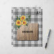 Individuelle Textseite für rustikale Landhausrezeptorbinder mit Sonnenblumensträuchern und bedrücktem Naturbraunholz über einem trendigen Büffel-Karo mit kariertem Gingham-Muster. ++++++++++++ Persönlich mit Ihrem Text (Titel der Rezeptkategorie) und Ihrem Familiennamen-Monogramm / Name initial!
