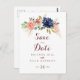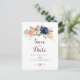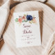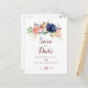 Diese rustikale vergoldete Blätter und die Save the Date blumengeschmückte Postkarte sind perfekt für eine moderne Hochzeit. Das Design ist mit handgezeichnet Aquarell-lila, Marineblau, Rot, Bordeaux, Marineblau-Blume, grünen und goldenen Blätter, die einen eleganten geometrischen Rahmen schmücken.
