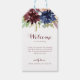 Diese rustikalen Blätter und die Begrüßungstafeln sind perfekt für eine Hochzeit. Das Design ist mit handgezeichnet Aquarell lila, Marine, Rot, Bordeaux, Marine Blume, Grün und Gold Blätter. Diese Tags eignen sich perfekt für Begrüßungstaschen und Hochzeiten in Urlaubsort.