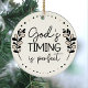 Ein Retro rustikales beige und schwarz Blätter laurel Schrift Typografie Design mit den Worten: Gottes Timing ist perfekt. Fügen Sie Ihre eigene Nachricht auf der Rückseite zu personalisieren.