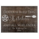 Lassen Sie die Segnungen der Göttin in Ihren kulinarischen Hafen mit diesem charmanten rustikalen Küchenzeichen einladen. Mit seinem eleganten Pentagramm-Design und der eleganten Typografie auf einem holzstrukturierten Hintergrund eignet sich dieses Stück perfekt für jede witzige, spirituelle oder bäuerlich inspirierte Küchendekoration. Ob in Ihrer Zuhause oder als nachdenkliches Geschenk gegeben, es ist eine wunderschöne Erinnerung, mit Liebe und Absicht zu kochen. Ideal für Hexen, Küchenmagistenfans und alle, die eine Touch der Spiritualität in ihrer Zuhause lieben.