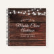 Rustikales Abschluss Gästebuch mit individuelle Name, Schule und Klasse der modernen Typografie auf einer Holzkulisse mit Saitenlichtdesign.