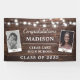 Feiern Sie Ihren Abitur mit diesem modernen und dennoch rustikalen Banner aus Streichellichtern auf einer dunklen Holzstruktur mit 2 persönlichen Bildern Ihres Absolventen, neben Name, Klasse und Schulname. Ideal für rustikale Scheune, festliche Outdoor-Feiern oder jeden Abschluss. Einfache Anpassung unter "Personalisieren Sie diese Vorlage".