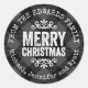 Erschwingliche, individuell bedruckte Rundaufkleber Weihnachtsgeschenktafeln personalisiert mit Ihrem Familiennamen oder anderen Texten. Dieses rustikale, moderne Urlaubsdesign besticht durch eine beängstigende MERRY CHRISTMAS Schrift auf einem karierten Hintergrund aus grauem und schwarzem Büffel-Karo. Verwenden Sie die Designtools, um eine beliebige Hintergrundfarbe auszuwählen und Schriftart und Farben zu bearbeiten, um Ihre eigenen Geschenkverpackungsetiketten für Ihren Urlaub individuell anzupassen.