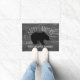 Rustikale graue hölzerne glückliche Menschen des Fußmatte