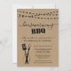 Rustikale GRILLEN-Party Einladung - GRILLEN-Utensilien und ein Maurerkirsch auf einem kraftvollen Hintergrund, die Ihre wunderbar rustikale GRILLEN Hauswärmung feiern.