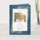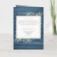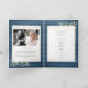 Eine personalisierte Reihenfolge der Beerdigungsdenkmal gefaltet Programm mit Grün auf einem rustikal blauen Holzpaneelen Hintergrund. Entwickelt von Thisisnotme©