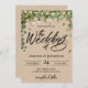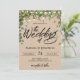 Rustikale Hochzeit Einladung mit grünen Blätter und Lichtern für minimalistische Gartenhochzeiten.