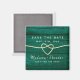 Einfache, moderne Kalligraphie, rustikale, elegante, grüne Holzhochzeit bewahrt den Dattelmagneten mit Imitaten goldenem Seilherz.