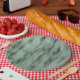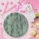 Rustikale grüne hölzerne Wand mit Dappled Pappteller