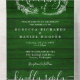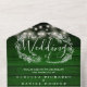 Alles in einer Hochzeitseinladung mit hübschen Saitenlichtern, einer handgezeichnet Blumengarten und schicker Typografie auf einem rustikalen smaragdgrünen Holzpaneelenboden. Die Einladung beinhaltet ein perforiertes UAWG mit Ihrem Hochzeitswebsite QR Code und Details. Entwickelt von Thisisnotme©