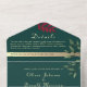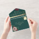 Diese elegante, moderne und boho-inspirierte Hochzeitseinladung besticht durch eine rustikale smaragdgrüne Kulisse, die mit staubigen rosa Blume in Aquarellen geschmückt ist. Das schicke botanische Design wird durch ein individuelles Foto des Ehepaares auf der Rückseite ergänzt. Personalisieren Sie es mit Ihrem eigenen Foto, Ihren Hochzeitsdetails und dem UAWG für eine wirklich einzigartige Einladung.
